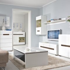 Набор модульной мебели "AZTECA" - это новые тенденции в мебельной моде. Минимализм, белые глянцевые фасады, современный дизайн, футуристические элементы, оригинальный способ открывания, рифленые вставки цвета Дуб венге Магия – отличительные особенности набора. С помощью элементов набора Вы создадите уникальный и современный интерьер гостиной комнаты.