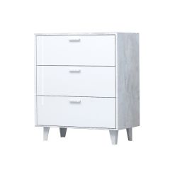 Комод Эго К-3, 3 ящика (на ножках) Бетон светлый/Белый глянец