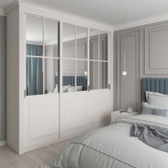 Фасад имеет уникальное сочетание глубокого тиснения и эффекта патины, присущей классическому стилю. Зеркала и зеркальные фасады подчеркнуты фацетом.