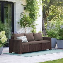 Превратите свой сад или патио в роскошную гостиную на открытом воздухе с 3-местным диваном Калифорния. Изготовленный из устойчивой к погодным условиям пластика диван никогда не заржавеет, не истлеет, не сгниет и не выцветет. Практически не нуждается в уходе и всегда выглядит как новый. Благодаря толстым подушкам и очень широким сиденьям этот диван представляет собой великолепное сочетание стиля и комфорта для идеального отдыха.
