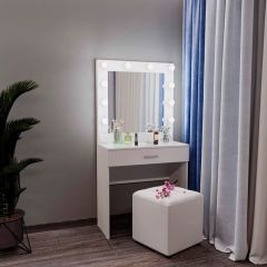 Столик предназначен под пуф или обычный стул, подходит для домашнего использования.